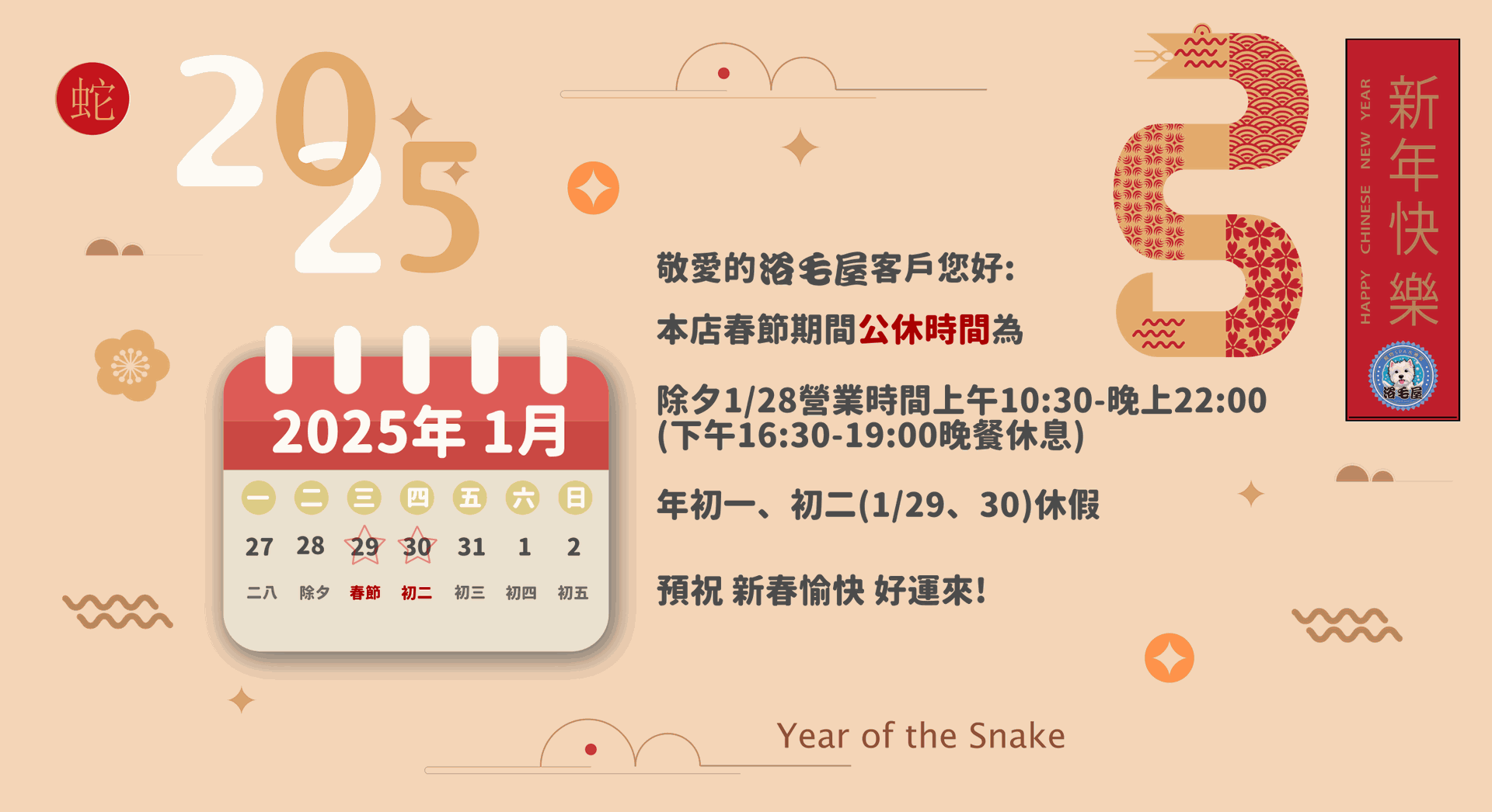 2025 春節期間營業時間公告